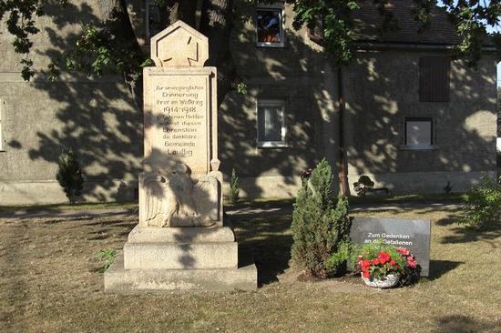 Zum ehrenden Gedenken an die Opfer errichtete ein Denkmalausschuss (1920) in Zusammenarbeit mit der Gemeinde Laußig das Kriegerdenkmal und eine Gedenkplatte.